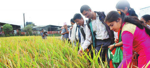Farmers in Bhaktapur, near Kathmandu, capital of Nepal, visit a hybrid rice field grown with seeds developed by Chinese scientists in Hainan, which largely improved local food production. Photo Provided To China Daily