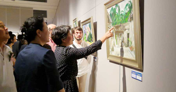 An exhibition of artwork by Russian and Chinese artists attracts visitors, May 11, 2019. [Photo by Ma Zhiping/chinadaily.com.cn]