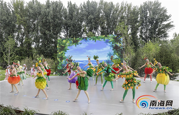 A distinctive dance showcases the tropical fruits of Haikou. [Photo/hinews.cn]
