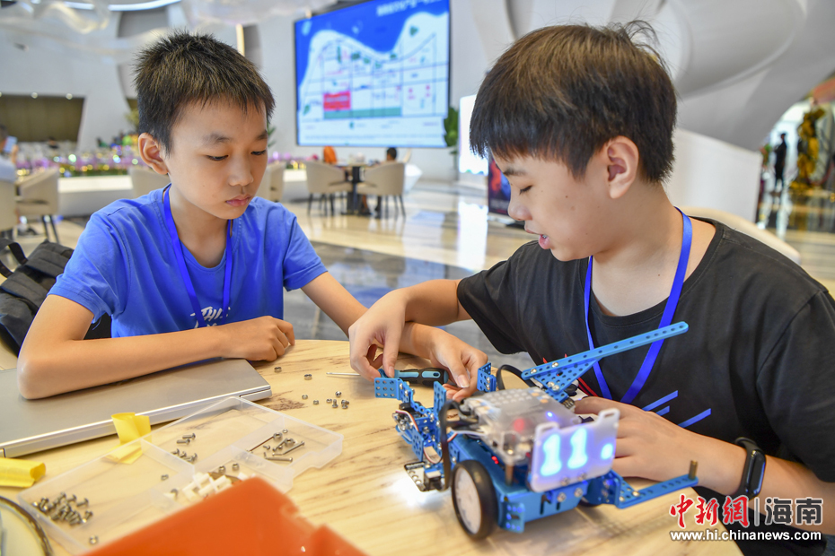 A total of 82 young robot enthusiasts from 52 teams aged between six and 13 years old gathered at Haikou's Changying Wonderland on Aug 3 for a robotics tryouts.