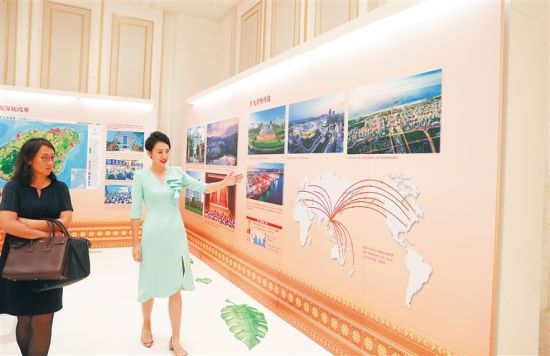A special exhibition with videos, photos, and intangible cultural heritages showcasing Hainan's development achievements was set up in Beijing on Sept 16.